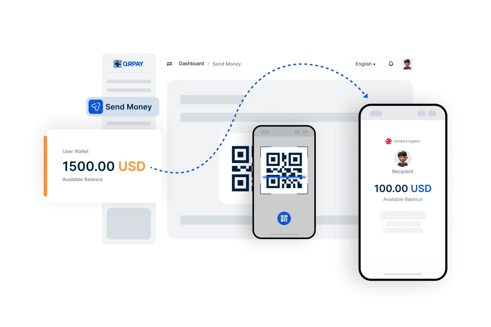 Simply enter the recipient’s QRPay Pro ID, email, or phone number, or scan their QR code. Once you confirm the details, the funds will be sent instantly to their account.